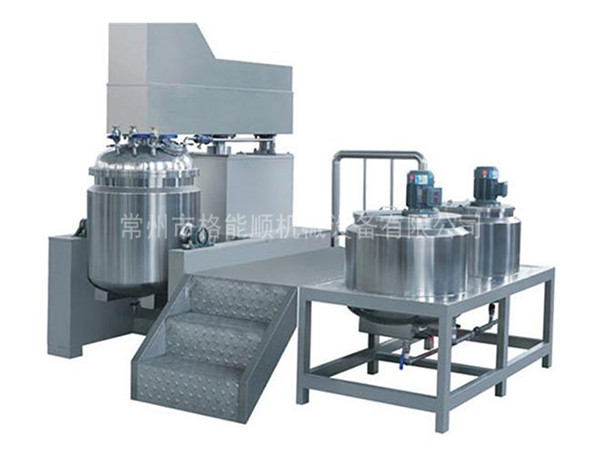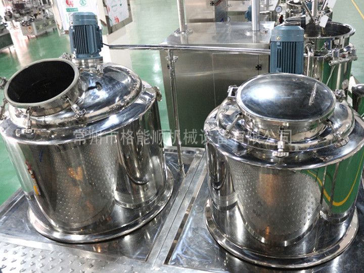 1、乳化鍋過為自動升降式,水鍋、油鍋中的物料通過輸送管道可在真空狀態(tài)下直接吸入乳化鍋。